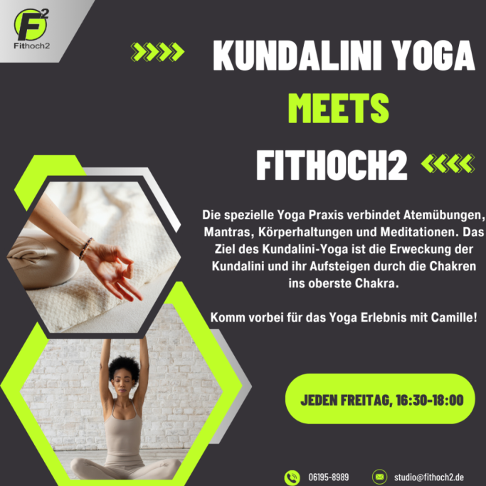 Entdeckt die transformative Kraft von Kundalini Yoga in unserem neuen Kurs im Fithoch2! Dieser Kurs ist für alle geeignet, die ihre körperliche, mentale und spirituelle Gesundheit verbessern möchten. Durch eine Kombination aus yogischen Körperhaltungen, Atemtechniken, Meditation und Gesang werdet Ihr lernen, Eure Energie zu kanalisieren um Euer volles Potenzial zu entfalten. Der Kurs findet jeden…
